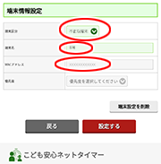 • 「端末区分」を変更すると、「こども安心ネットタイマー」で設定したスケジュールが初期化されます。