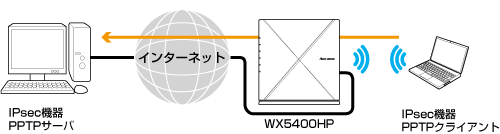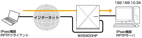 IPsecまたはPPTPによるVPN接続を使用することにより、インターネットを経由してLAN側のIPsec機器/PPTPクライアントからWAN側のIPsec機器/PPTPサーバにアクセスすることができます。また、本商品の動作モードがPPPoEルータモードまたはローカルルータモードの場合は、WAN側のIPsec機器/PPTPクライアントからLAN側のIPsec機器/PPTPサーバにアクセスするように設定することも可能です。