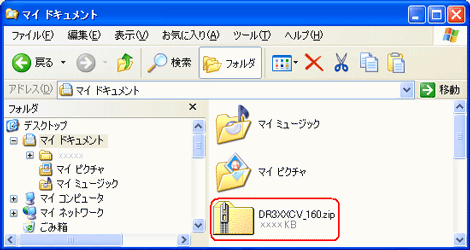 圧縮フォルダ[DR3XXCV_160.zip]が作成されます。