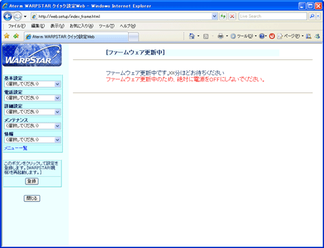 通信中(IP電話ご利用中など)は、バージョンアップできません。通信していないときに行ってください。