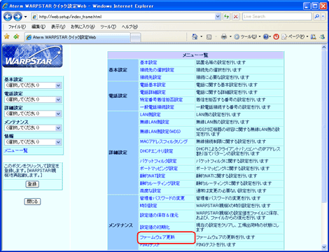 Aterm IP電話バージョンアップサポートセンター