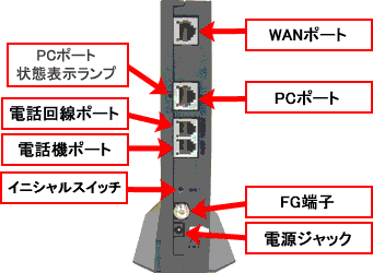 | PCポート | PC | ETHERNETケーブル(添付品)を使用してパソコンと接続するためのポートです。 (100BASE-TX/10BASE-T) |