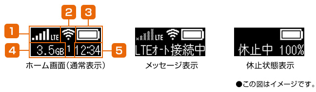 | 1. 電波受信レベル | 点灯 | LTEでインターネットに接続しているとき LTEの信号の強度を5段階で表示 |