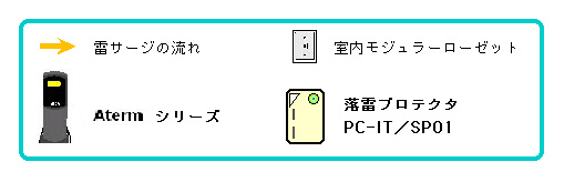 雷サージが通信線からAterm・PC・AC100V線を通過して破壊することがあります。