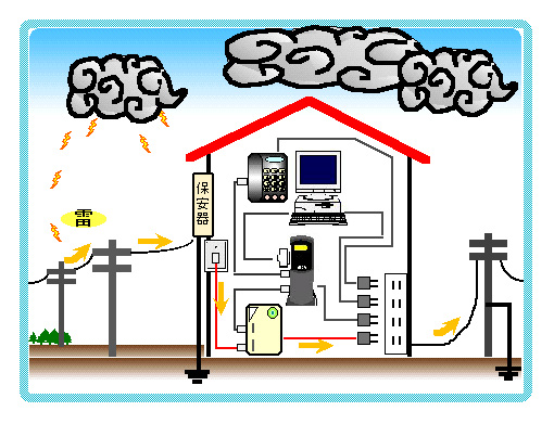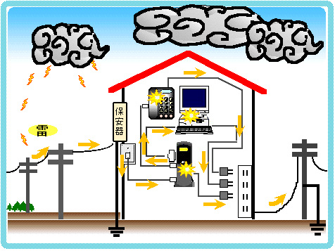 誘導雷は、各家庭へ侵入するエネルギーの規模が直撃雷に比べて小さいものですが、