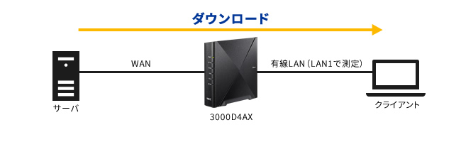 Aterm 3000D4AXにつきまして、弊社の測定環境における無線LANと有線LANのスループット測定結果をご参考情報として掲載いたします。