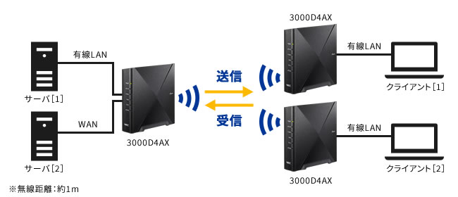 - *周囲の電波環境や使用するパソコン、サーバの性能や環境などにより速度が出ない場合があります。