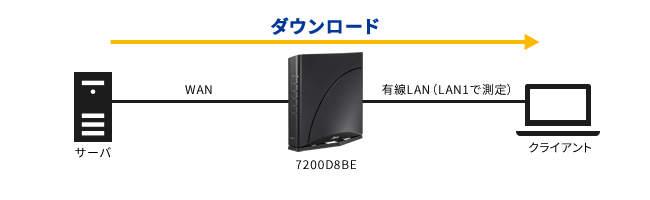 Aterm 7200D8BEにつきまして、弊社の測定環境における無線LANと有線LANのスループット測定結果をご参考情報として掲載いたします。