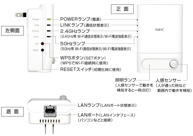 Aterm W1200EX/W1200EX-MS:各部名称