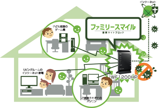 ネットスター株式会社のフィルタリングサービス「悪質サイトブロック ファミリースマイル」に対応。悪質なサイトや有害サイトへのアクセスを、ご家庭のインターネットの出入り口でAtermがブロックして、家族みんなを危険なサイトから守ります。