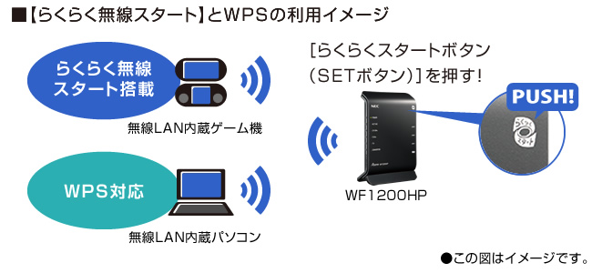 また、Wi-Fi Allianceが定めた無線LANの設定規格“WPS (Wi-Fi Protected Setup)”に対応したパソコンやプリンタなどとも、ボタンを押すだけの簡単設定です。