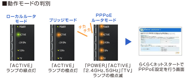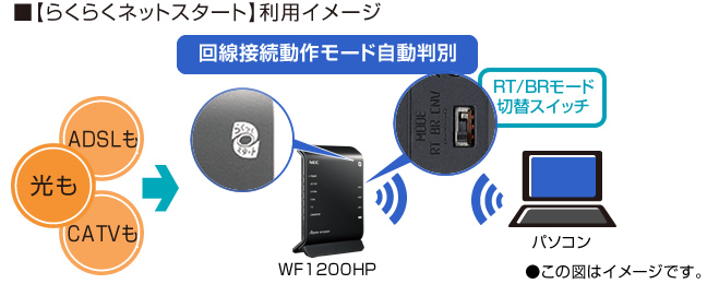 ボタンを押すだけで利用回線に適した動作モードを自動判別【らくらくネットスタート】