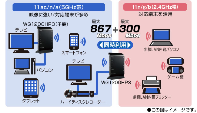 映像端末は“5GHz帯”を。ゲームやプリンターなどは“2.4GHz帯”で