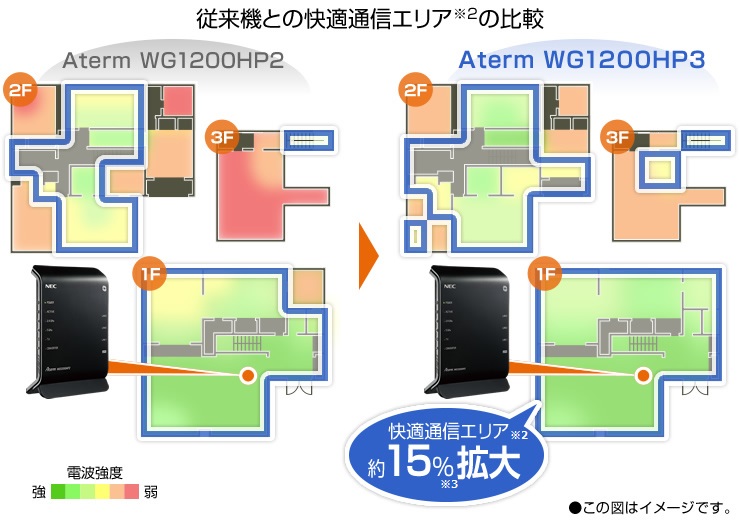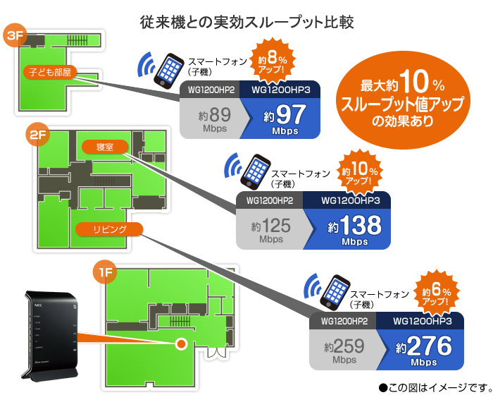 - ※3 WG1200HP3とWG1200HP2の比較検証結果です。当社測定環境での検証結果であり、ご利用の環境により異なります。