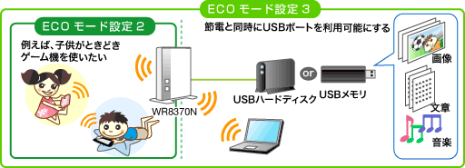- WR8370Nは、USBポートも活かす[ECOモード設定3]