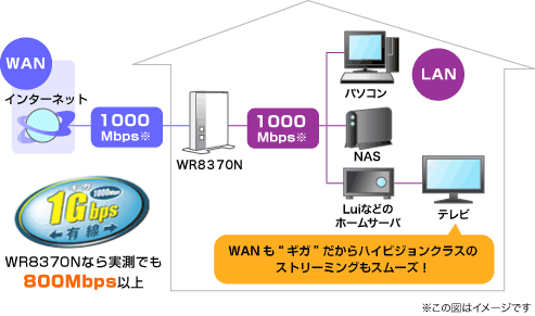 ブロードバンドとの接続も有線LANも、すべて1000Mbps!※