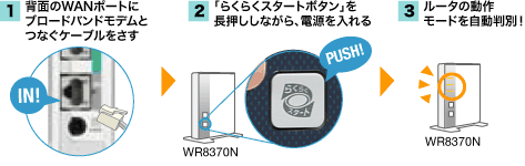 ボタンを押すだけで利用回線に適した動作モードを自動判別[らくらくネットスタート]