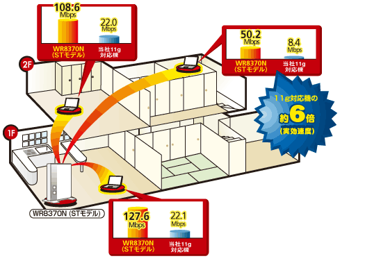 実際の住宅で測りました!WR8370N(STモデル)/当社11g対応機の無線速度測定