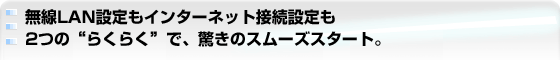 面倒な無線LANの接続設定も「らくらくスタートボタン」を押すだけ。SSIDや暗号化キーを含む設定情報を自動的に子機側に転送して設定を登録します。あらかじめ強固なAESモードが暗号化モードとして設定済みなので、暗号化設定も心配は無用。もちろん、親機側で細かなセキュリティ(EES-IDステルス機能、MACアドレスフィルタリングなど)の設定を変更した場合でも、[らくらく無線スタート]による設定が可能です。