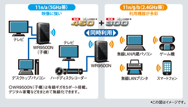 ![[マルチSSID]機能対応で、WPA対応子機とWEP専用子機(ニンテンドーDS等)が混在可能](/product/atermstation/product/warpstar/wr9500n-hp/images/feature_img_multissid.jpg)