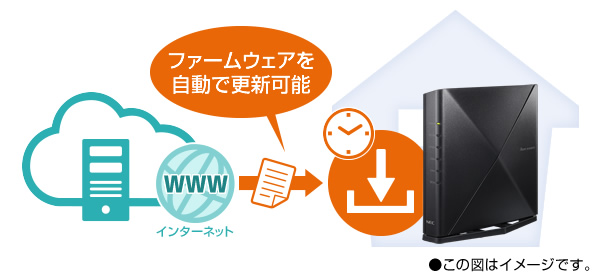 クイック設定Webであらかじめ時刻指定しておくことで、ファームウェアの更新があった時には自動でバージョンアップを実施する「自動バージョンアップ機能(時刻指定)」を搭載しました。ファームウェアの確認/ダウンロード/設定といった作業を行う手間が要らない上に、常に最新のファームウェア状態で利用できるので安心です。