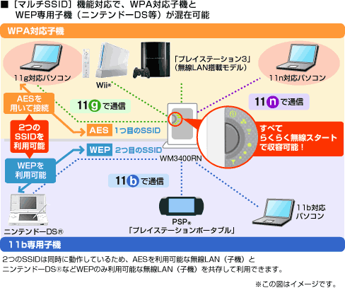 ![[マルチSSID]機能対応で、WPA対応子機とWEP専用子機(ニンテンドーDS等)が混在可能](/product/atermstation/product/wimax/wm3400rn/images/feature_img_multissidimage.gif)