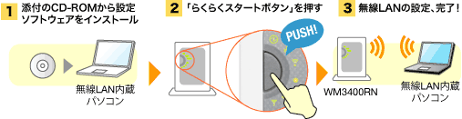 らくらく無線スタート&WPSで、無線LAN設定は簡単