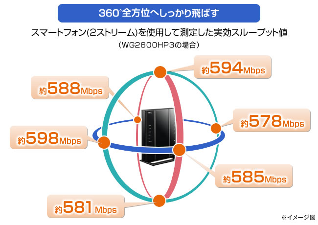 1.7ギガbpsの高速通信をコンパクトサイズで実現したギガWi-Fiルータ「WG2600HP4」をはじめ、11ac対応AtermにはNECの革新的な独自技術が詰め込まれているのです。