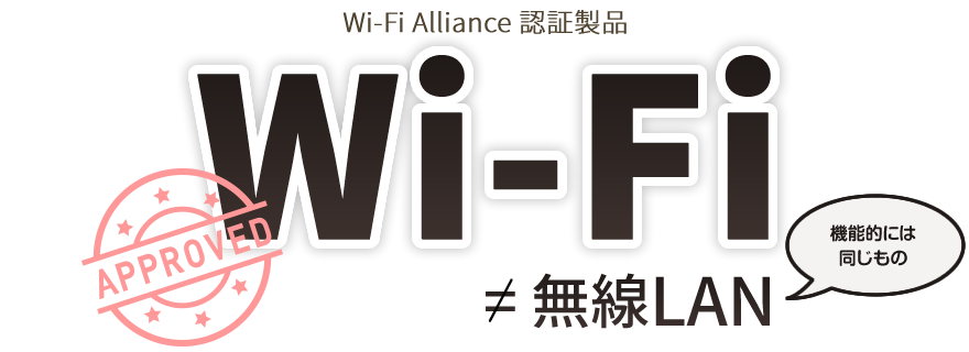 機能的には同じもの。 Wi-Fi(ワイファイ)は無線LANに関する登録商標で、Wi-Fi Allianceという団体によって定められた 規格に則り認証を受けた製品だけがWi-Fiという名称を名乗ることができます。