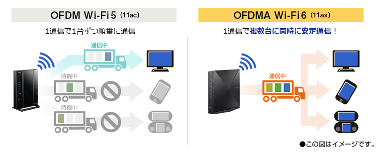 ゲームに集中したいのに、読み込み待ちが頻発したり、画面内の動きが重くなるのは興覚め…。古いWi-Fi規格で多くの機器を繋いでいる場合こうした現象が起こりがち。これを回避する技術のひとつがWi-Fi 6の「OFDMA」です。