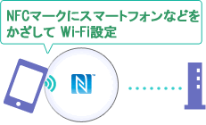 NFC(近距離無線通信)を利用して、スマートフォンやタブレットとのWi-Fi接続が簡単にできます。
