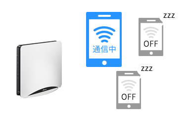 Wi-Fi 6で登場した省エネ技術。Wi-Fi親機との通信で順待ちとなった端末の通信機能を、その間スリープ状態に移行させることで端末の余分な電力消費を抑制します。