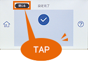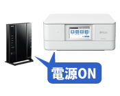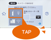Atermの[らくらくスタートボタン]を長押しして、[POWERランプ]が緑点滅(または、緑・オレンジ交互点滅)になるまで押し、プリンタの画面の[設定を開始する]をタップします。