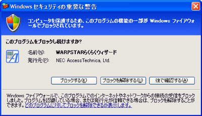 WindowsXP ServicePack2 with Advanced Securities (SP2) では、ハードウェアウィザード機能の変更に伴う、デバイスドライバインストール時の操作方法への影響、セキュリティ機能の強化(Windowsファイアウォールが標準で有効となる)に伴う、Aterm設定用ソフトウェア(らくらくウィザード、サテライトマネージャ等)が行う通信への影響などが発生いたします。下記の対応状況表および(※1)〜(※4)をご確認のうえ、対応をお願いいたします。