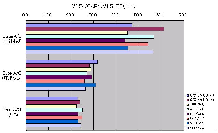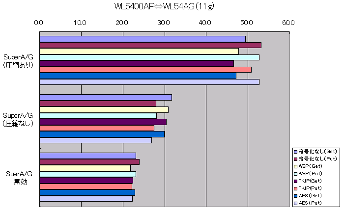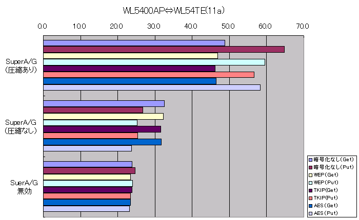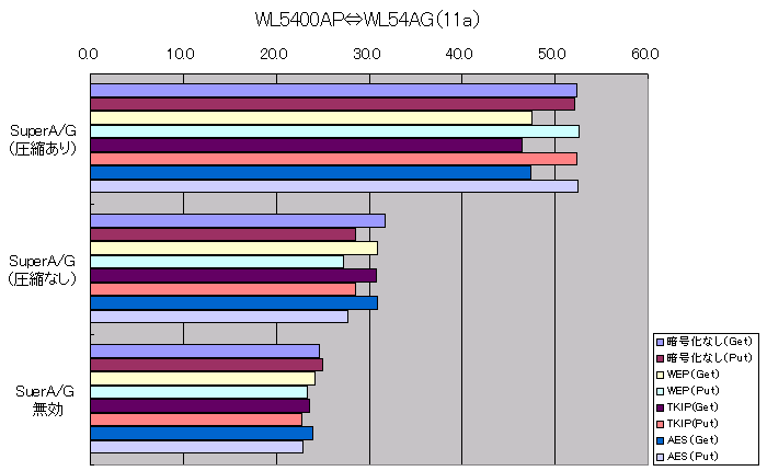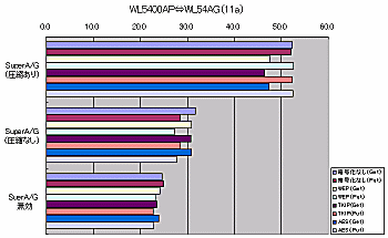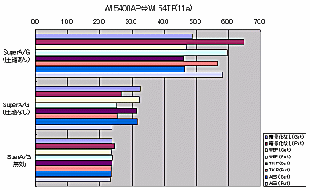 AtermWL5400APにおきまして、『Super A/G』モードを利用することにより、IEEE802.11a、11gの無線スループット値が向上いたします。