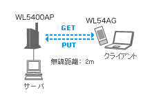 | AtermWL5400APとAtermWL54AGの測定構成 |