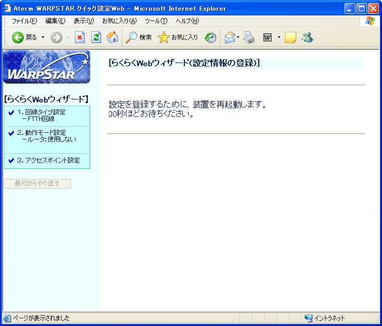 「設定」ボタンを押すと、自動的に設定が登録され、Atermが再起動されます。