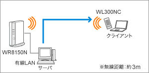 AtermWR8150N(ローカルルータモード)のLANポートに接続したサーバパソコンからAtermWL300NCを実装したクライアントパソコンへのデータ転送速度(受信)の実測値です。なお、クライアントパソコンからサーバパソコンへの通信速度(送信)は、受信速度より低い場合があります。