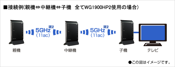 親機⇔中継機は、高速な5GHz帯通信で優先接続し、2.4GHz帯の親機も初期設定のままで接続できます。(※1)