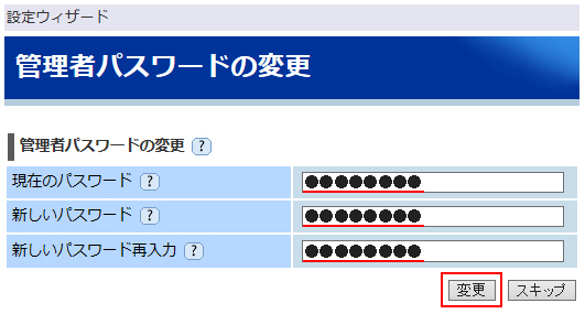 ※ 【スキップ】ボタンを押した場合は、パスワードは変更されずに保持されます。