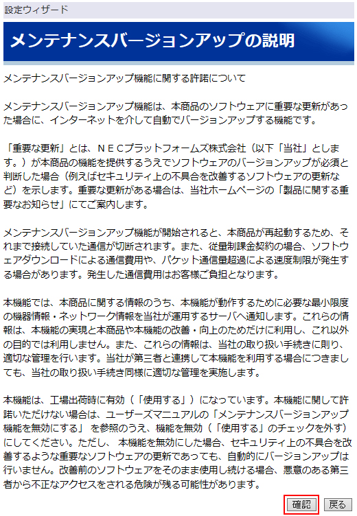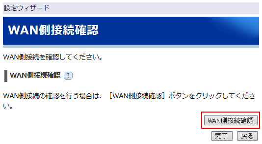 ボタンを押したあと、「WAN側接続確認を行います。よろしいですか?」と表示されますので許可してください。