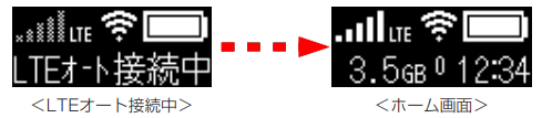 ※ LTEオート接続中は、アンテナバーがグレーになっており、LTEが点滅しています。