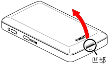 充電池カバーを取り外す場合は、切り欠き部に指をかけ、矢印の方向に持ち上げて取り外してください。