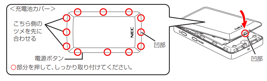 ここでは、Aterm MP02LN・MP02LSにnanoSIMカードと充電池パックを取り付けるまでの手順をご案内します。