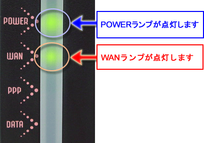 モデム(または、回線終端装置)とAtermが正常に接続されるとAterm前面のWANランプが緑点灯します。