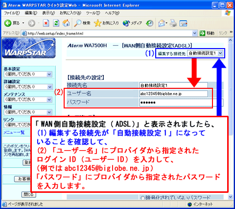 入力する「ログインID」「パスワード」は、プロバイダによって異なります。
