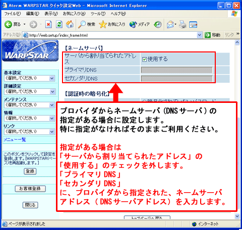 ※クイック設定WebにはWWWブラウザソフトが必要になります。