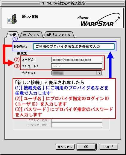 入力する「ログインID」「パスワード」は、プロバイダによって異なります。