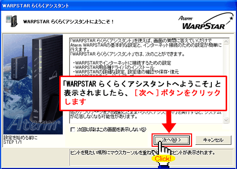 「次回以降はこの画面を表示しない」にチェックを入れた場合は表示されません。