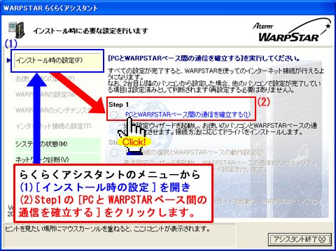 ・らくらくアシスタント Ver6.40、ファームウェア Ver7.27のWA7500Hを利用。